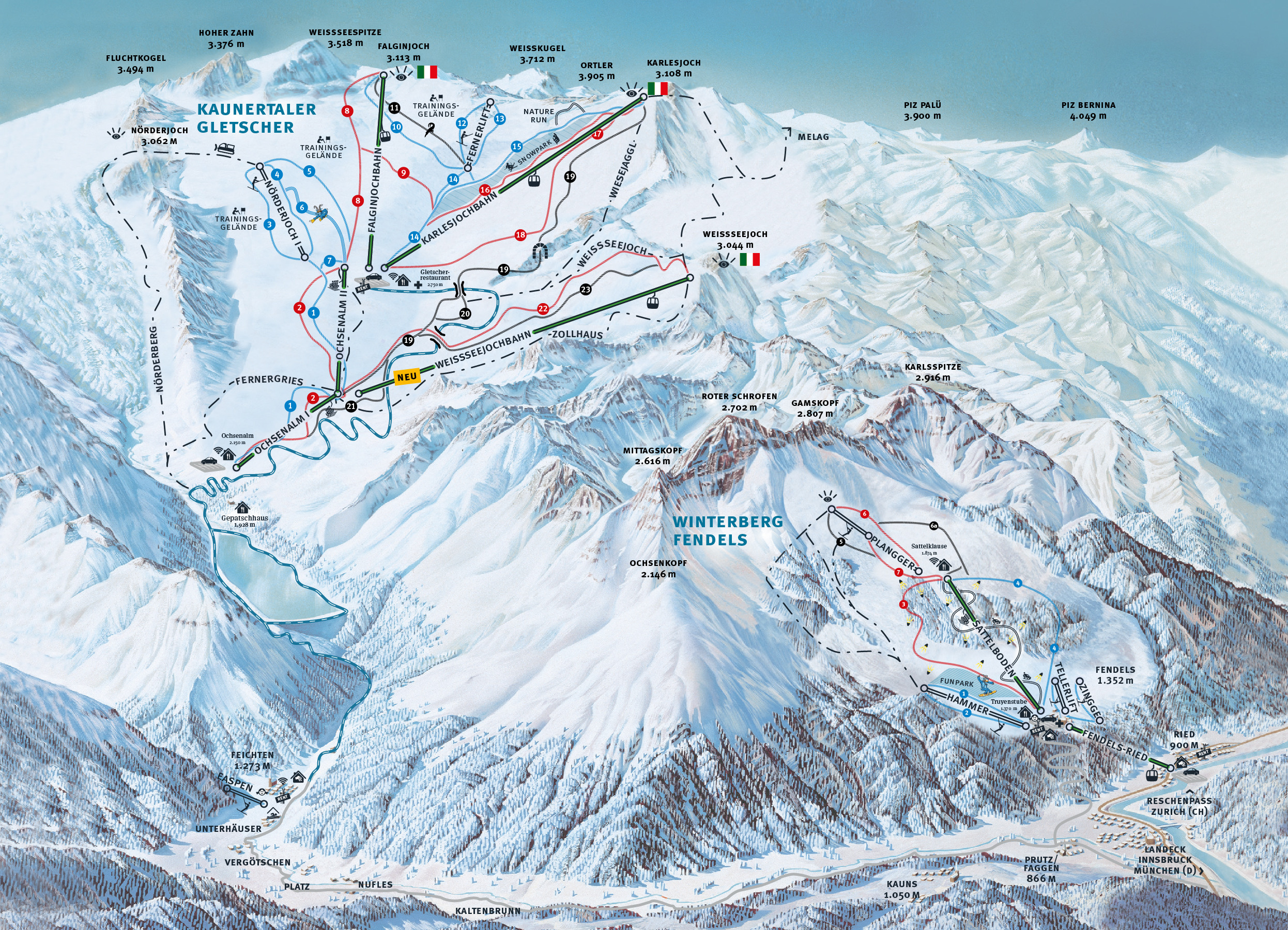 Willkommen im Kaunertal, einer Gemeinde, die auf einer Höhe von 1.287 Metern liegt. Hier findest du das Skigebiet am Kaunertaler Gletscher, das sich von 2.150 bis 3.113 Metern erstreckt und dir eine Gesamtpistenlänge von 55 Kilometern bietet.