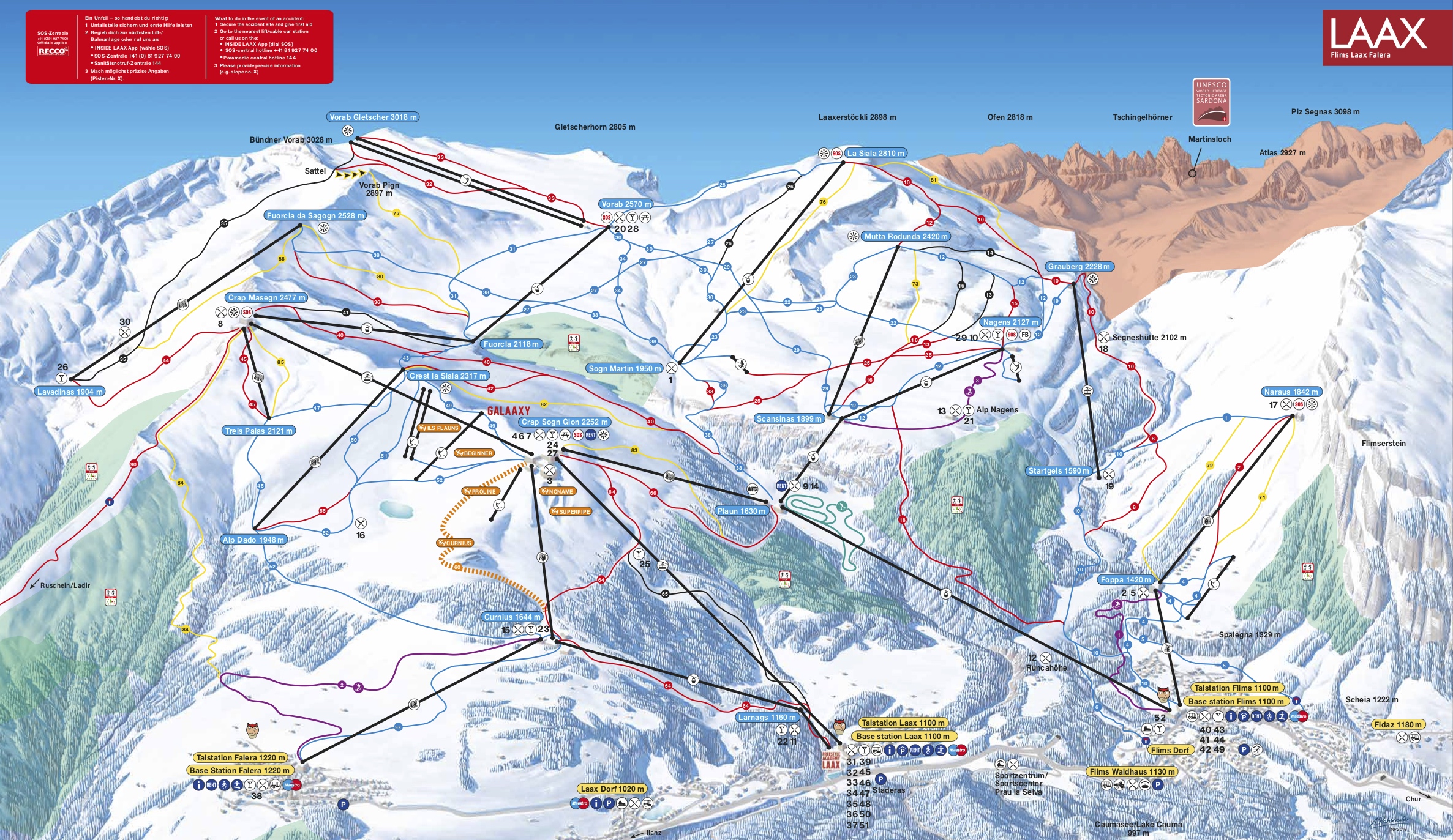 Der Skiort Laax liegt im Skigebiet Laax/Flims/Falera und bietet dir Zugang zu 222,8 Pistenkilometern für jedes Level. Mit 12 markierten Freeride-Routen und 5 Snowparks ist der Skiort außerdem ein echter Magnet für Freerider und alle, die es werden wollen.