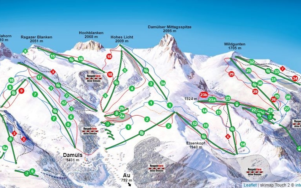 Im Skigebiet Damüls-Mellau findest du Pisten aller Schwierigkeitsgrade. 27,6 Kilometer leichte Pisten eignen sich perfekt für Anfänger und Wiedereinsteiger. Auf den 50,5 Kilometern mittelschweren Pisten kannst du deine Fähigkeiten weiter ausbauen. Und die 9,7 Kilometer schweren Pisten sind eine Herausforderung für alle Könner. Besonders hervorzuheben ist die spektakuläre Talabfahrt nach Mellau, die mit ihren 7,5 Kilometern Länge pures Skivergnügen verspricht. Freerider können sich auf 21,2 Kilometer Skirouten freuen. Für Familien hat Mellau Brumi’s Kinderland eingerichtet, in dem ein Förderband und ein Seillift ein ideales Anfängergelände bedienen.