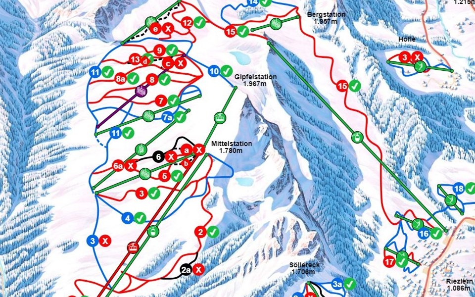 Die Berge Fellhorn und Söllereck befinden sich ebenfalls auf der deutschen Seite des Skigebiets. Aufgrund der Nähe des Fellhorn zum Kanzelwald in Österreich gilt Fellhorn-Kanzelwald als eigenes Teil-Skigebiet. Hier befinden sich 37,8 größtenteils leichte und mittelschwere Pistenkilometer. Zudem kannst du dich über 5 Buckelpisten, 2 Talabfahrten und die Crystal Family freuen, zu der die Crystal Slope, der Crystal Ground für Fortgeschrittene und der Crystal Peak Funpark für Anfänger gehören. Auch auf dem Söllereck bietet sich dir ein gutes und besonders familienfreundliches Angebot, da 56 % der 13 Pistenkilometer auf dem Berg blau sind und 39 % rot.
