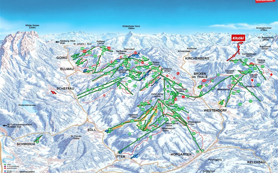 Scheffau am Wilden Kaiser liegt auf einer Höhe von 745 Metern auf einem sonnigen Plateau am Fuße des Wilden Kaisers. Es ist über 2 Liftstationen an die Skiwelt Wilder Kaiser angeschlossen und bietet dir so den Zugang zu 244 Pistenkilometern und 26 Kilometern Skirouten.